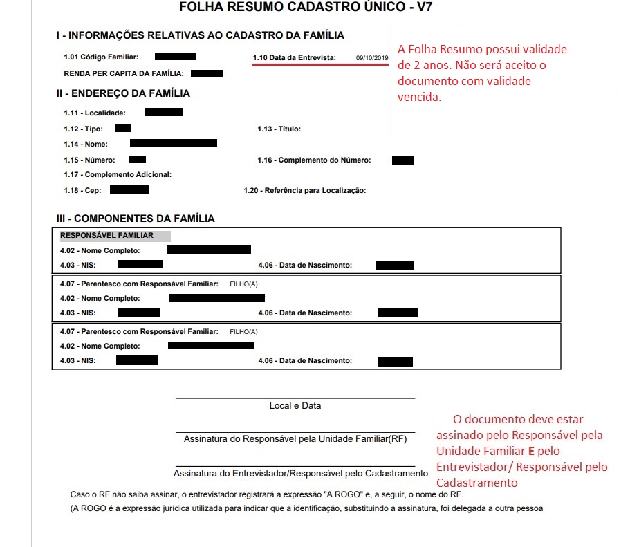 DOCUMENTO CORRETO DO CAD ÚNICO QUE DEVE SER ENVIADO: FOLHA RESUMO